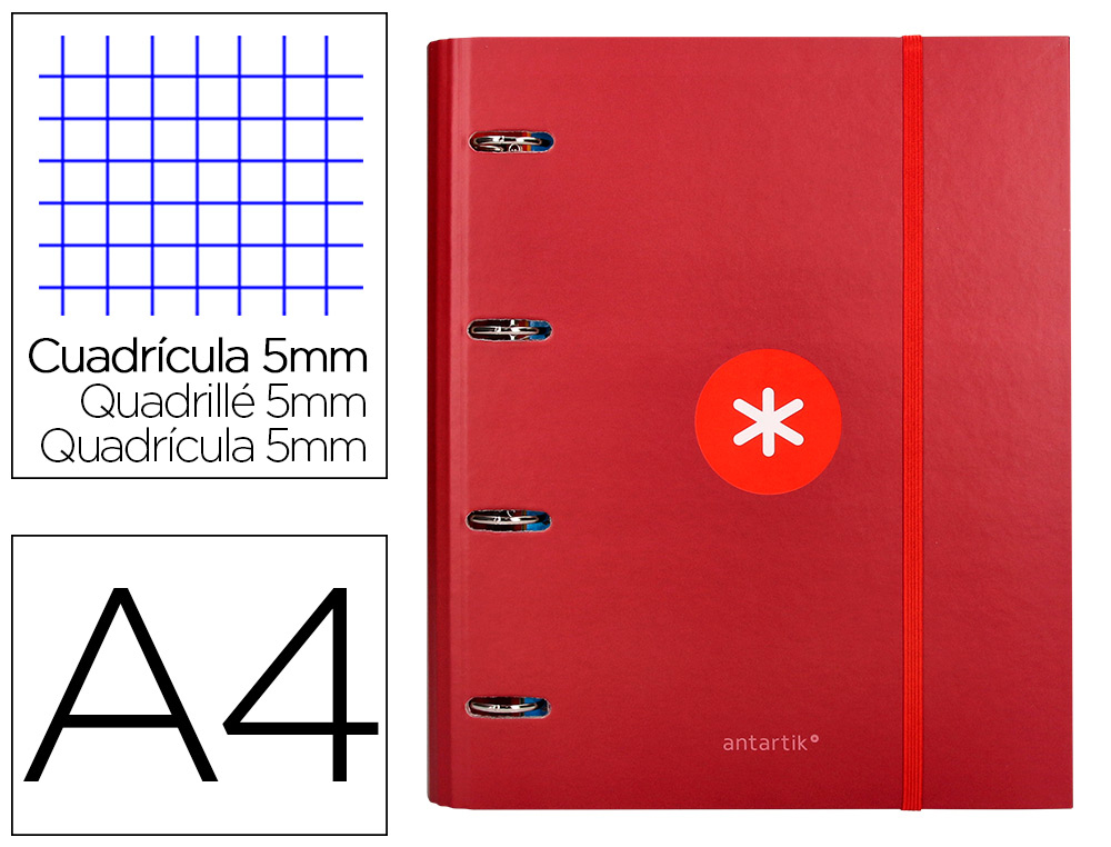 Carpeta con recambio antartik a4 cuadro 5mm forrada 4 anillas 40mm redondas con solapa color azul marino