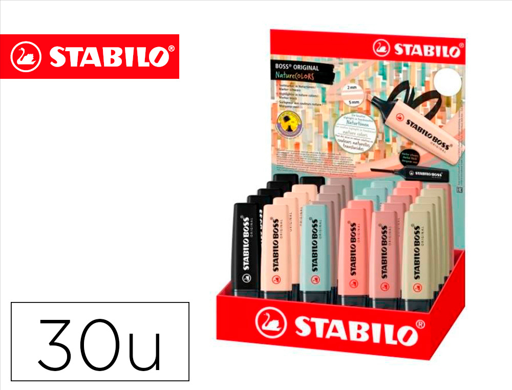 Rotulador stabilo boss pastel fluorescente 70 nature colors expositor cesta de 30 unidades colores surtidos