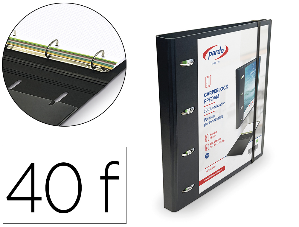 - Formato y Dimensiones: Diseñada para hojas DIN A4 (210 x 297 mm), con capacidad suficiente gracias a sus anillas de 25 mm de diámetro.