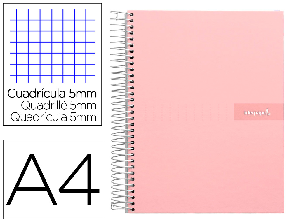 Este cuaderno espiral A4 destaca por su combinación de funcionalidad y calidad, ideal para uso escolar, académico o profesional. Su tapa forrada en color verde protege de manera eficiente las 120 hojas de papel de 90 g/m², mientras que su espiral nylonizada permite una apertura total para facilitar la escritura en ambos lados. Con un formato de cuadros de 5 mm y cinco bandas de colores, favorece la organización visual y precisión en el trabajo diario.